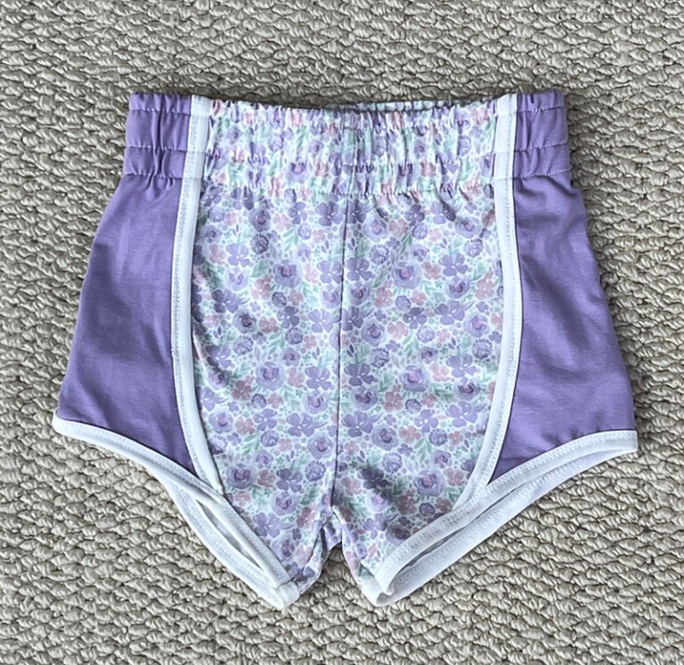 Colorworks Kids Athletic Shorts – Floral Shorts with Lavender Side