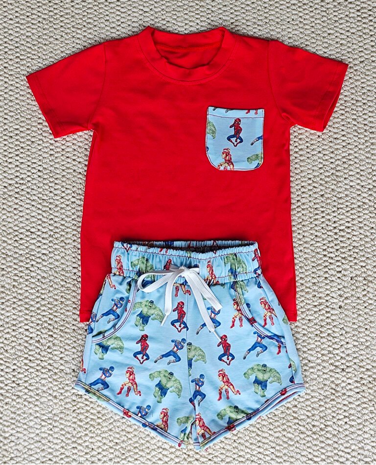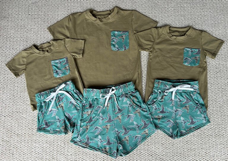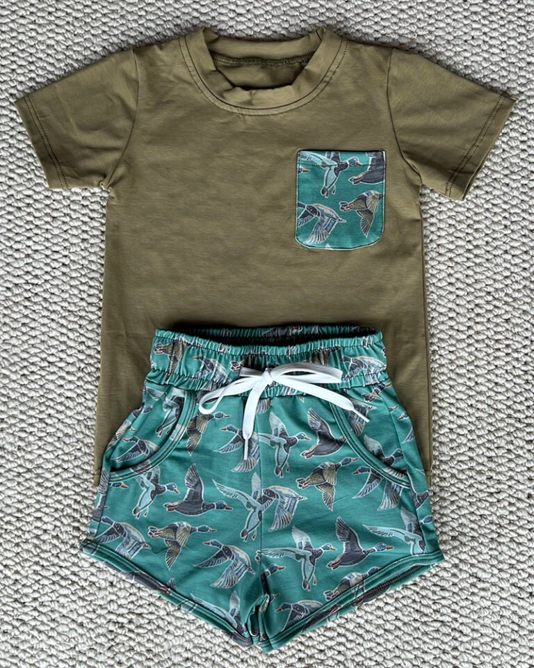 Mallard Duck Sage Green Boy Pocket short-sleeved shorts set