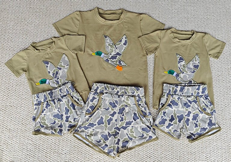 Duck Call Applique Brown Boy Short-sleeved shorts set
