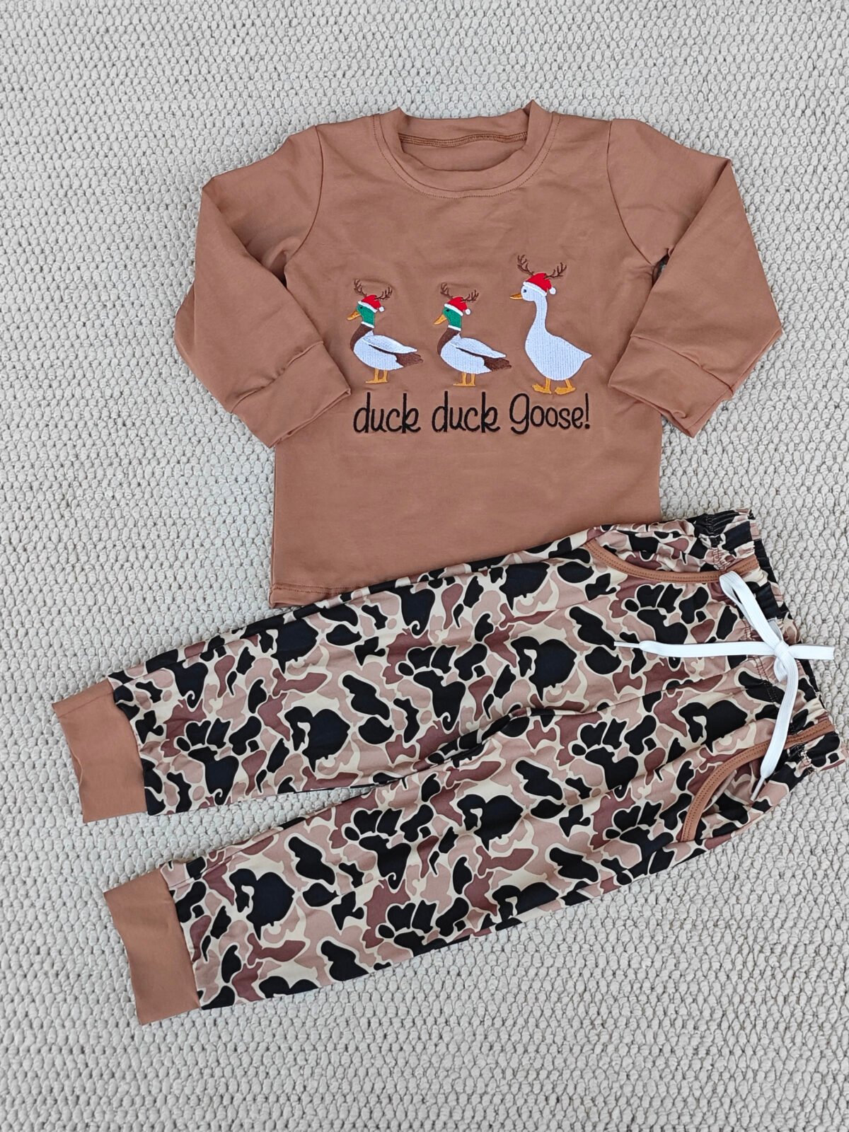 Mallard Duck Applique Sage Green Boy Short-sleeved shorts set
