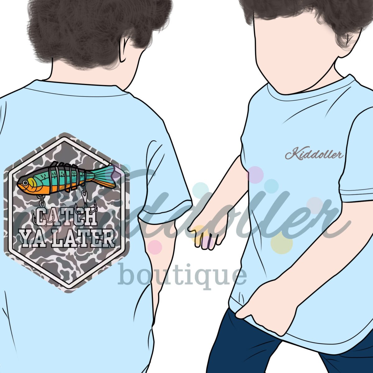 Light Blue Camo Fishing DTG Printing Boy Shirt
