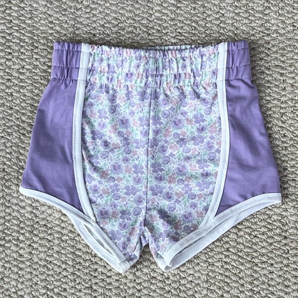 Girl Athletic Shorts – Floral with Light Blue Sides
