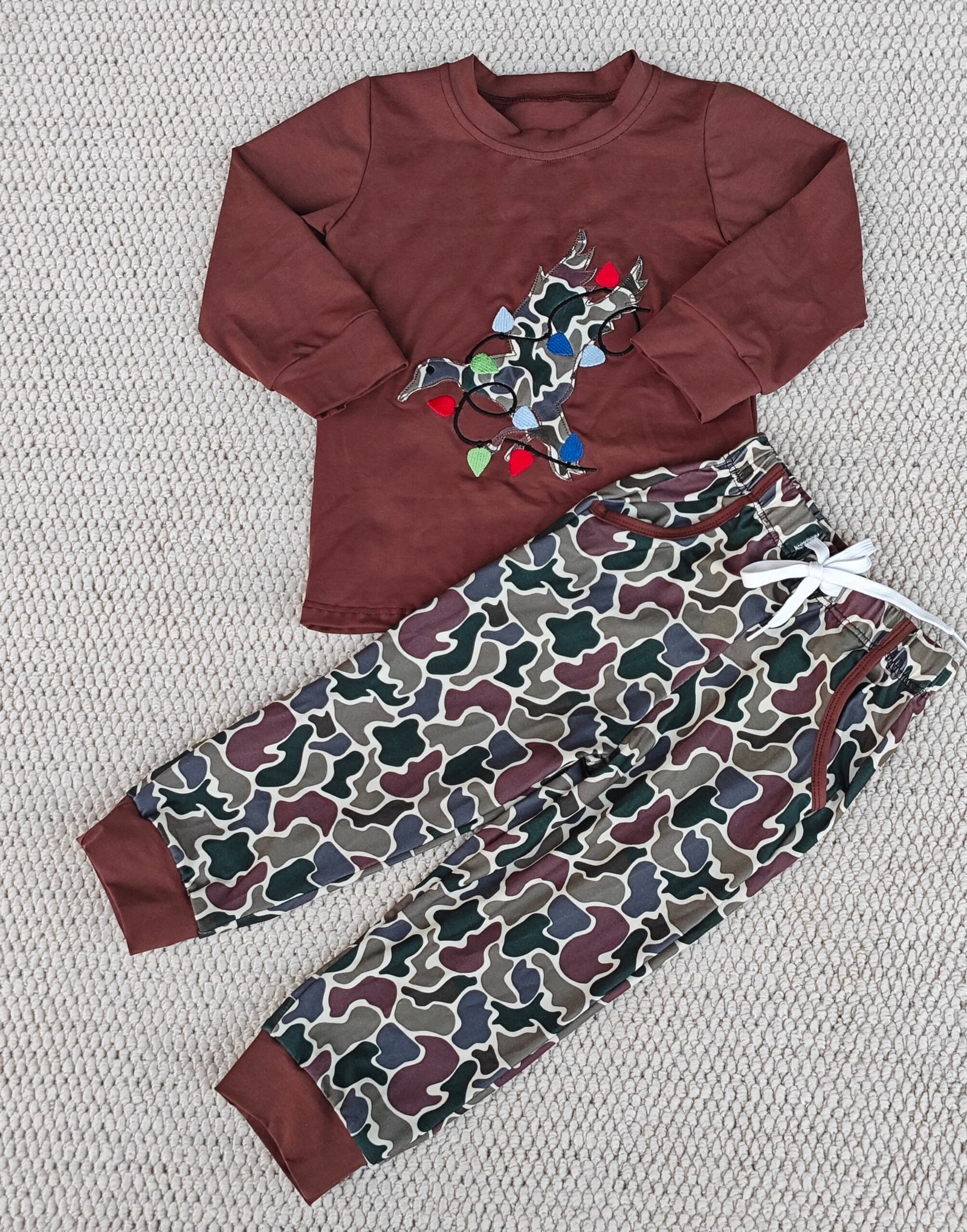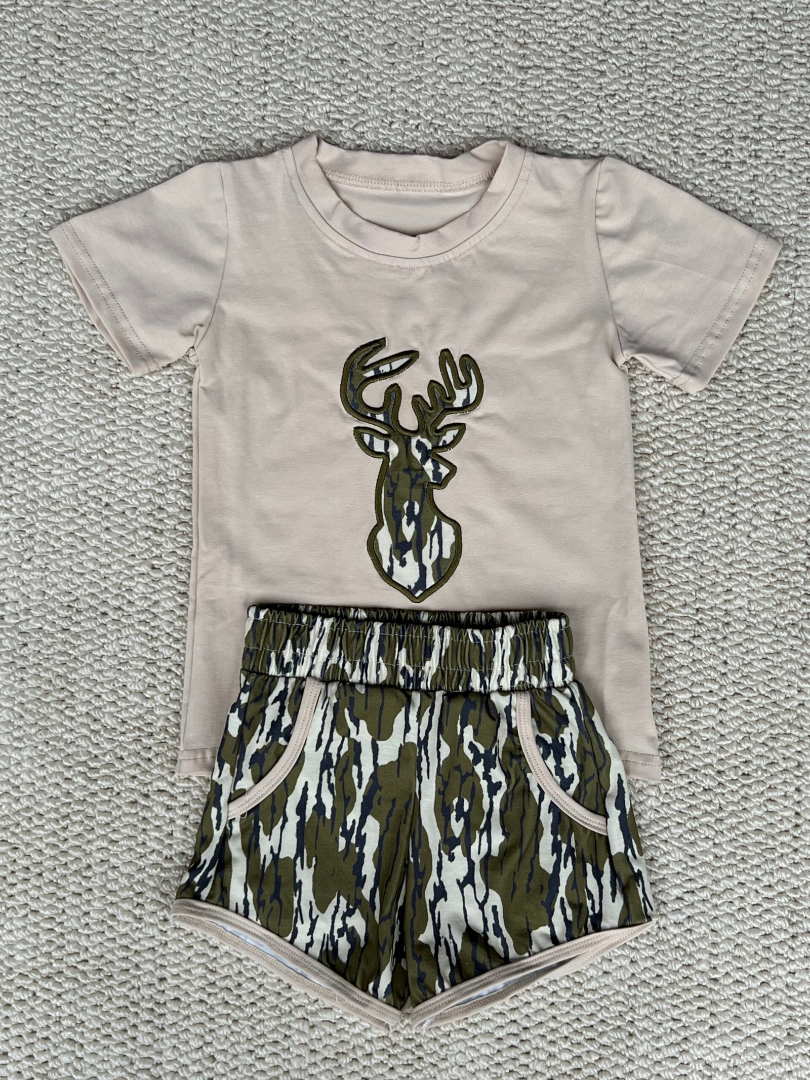 Mallard Duck Sage Green Boy Pocket short-sleeved shorts set