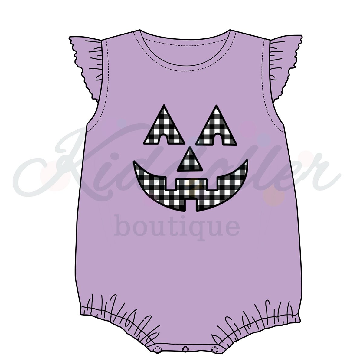 Pumpkin Face Applique Purple Baby Girl Bubble